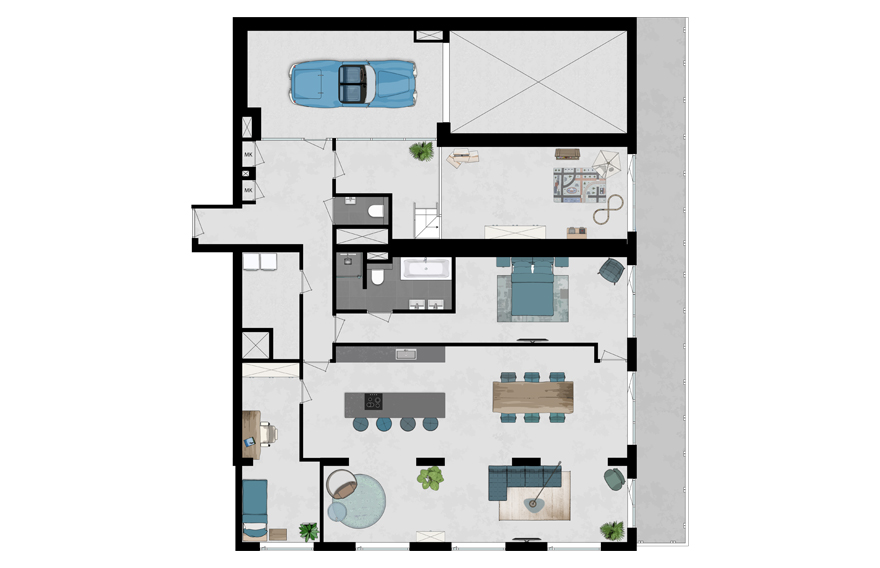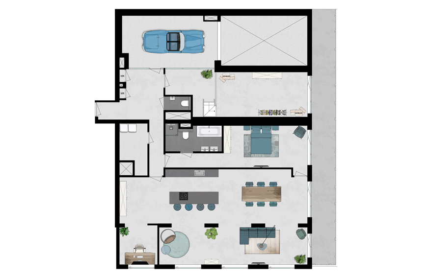 In een Drive-In Loft woon je met je grote liefde onder één dak. De deuren van de autolift gaan open en je rijdt je geliefde oldtimer of sportwagen zó je woning in. Het is de blikvanger in je interieur, een mooie aanvulling op jouw inrichting.